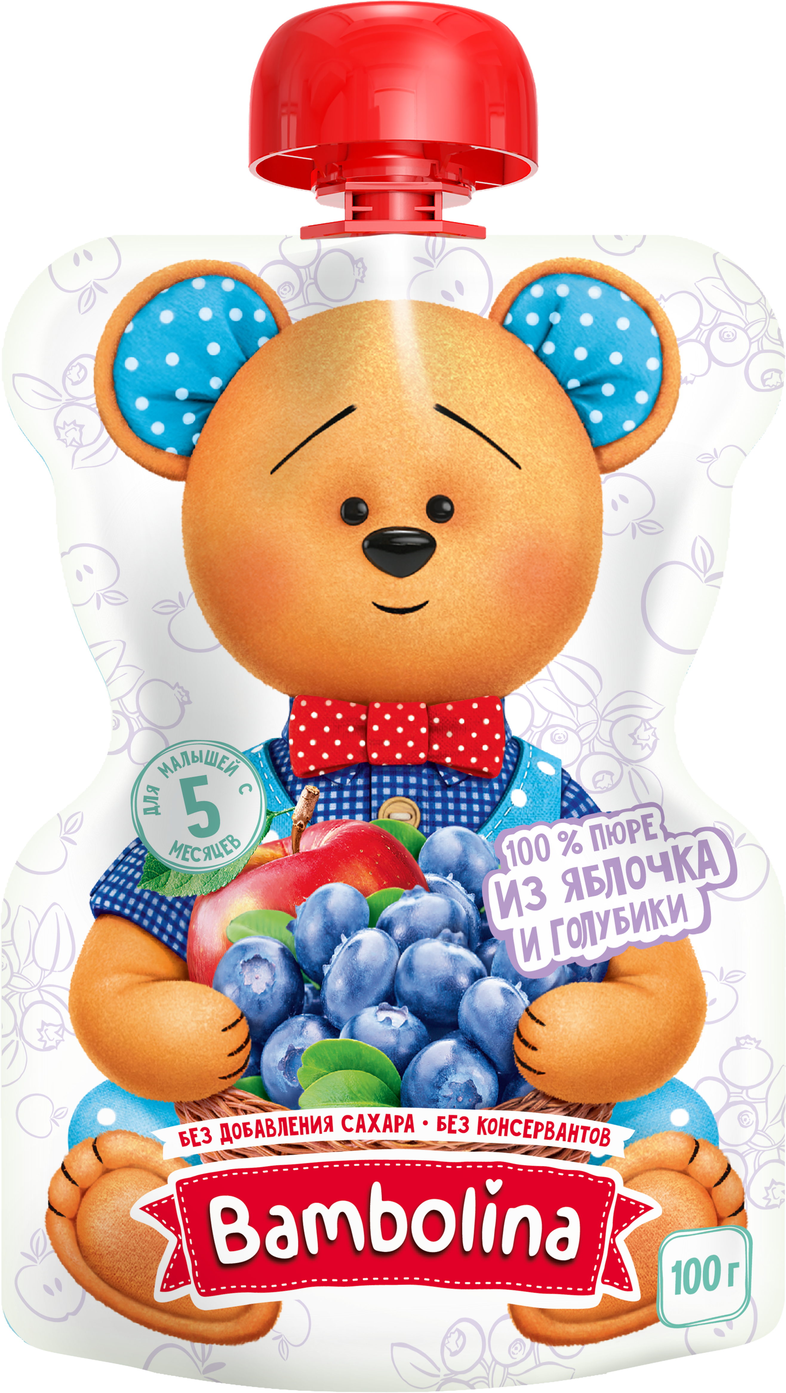 Купите Пюре из яблок и голубики "BAMBOLINA" 100 г в мягкой упаковке в аптеках Астана, Алматы, Кокшетау, Шымкент, Тараз, Кызылорда, Туркестан, отправьте чек и получите бонус 5%