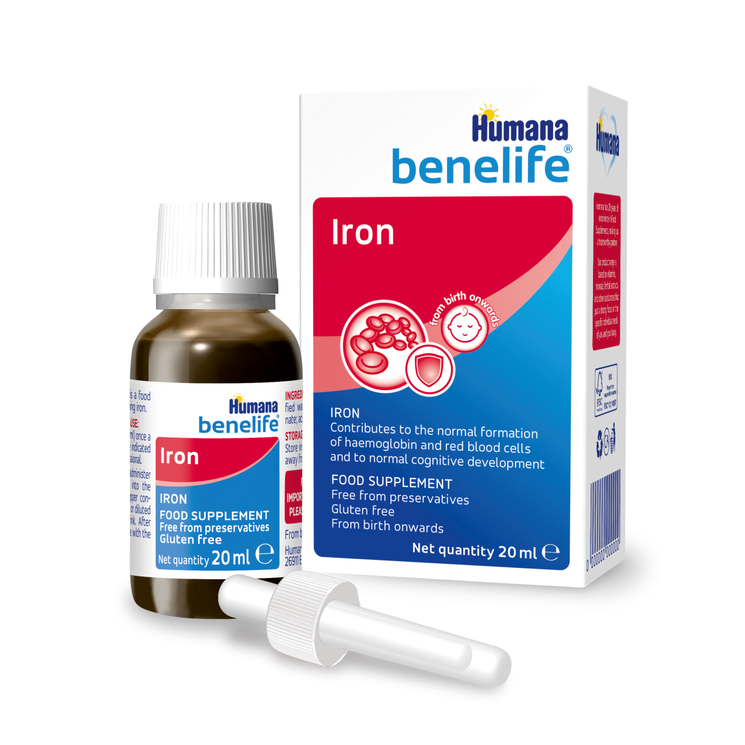 Humana benelife Iron - это диетическая добавка на основе бисглицината железа, способствующая нормальному образованию гемоглобина и эритроцитов, поддержанию когнитивного развития и правильной работе иммунной системы. Разработан для потребностей младенцев и детей младшего возраста - с использованием источника железа, который является щадящим для желудка, эффективным и безопасным даже для недоношенных детей.
