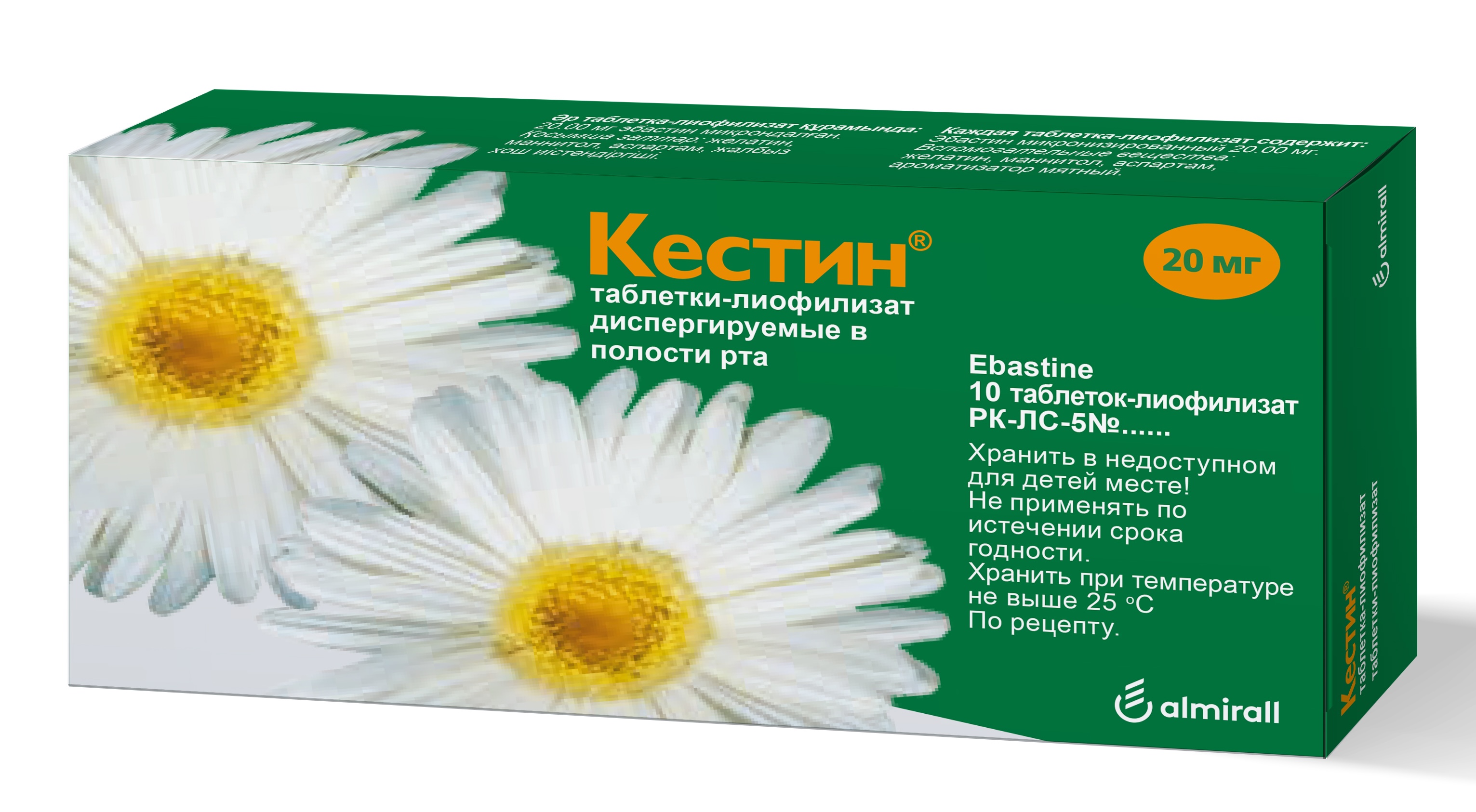 Покупайте препарат Кестин ЛИОФИЛИЗАТ 20 мгв аптеках по всему Казахстану, отправляйте чек и получите бонус 500 тенге. Кестин ЛИОФИЛИЗАТ 20 мг- антигистаминный препарат. Инновационная форма выпуска ЛИОФИЛИЗАТ действует быстро (через 5 минут обнаруживается в крови), не требует запивания (растворяется во рту), не вызывает седативный эффект, совместима с алкоголем. Детям с 12 лет.