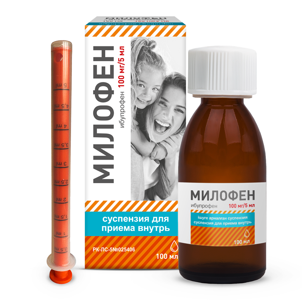 МИЛОФЕН, суспензия для приема внутрь, 100 мг/5 мл, по 100 мл, №1