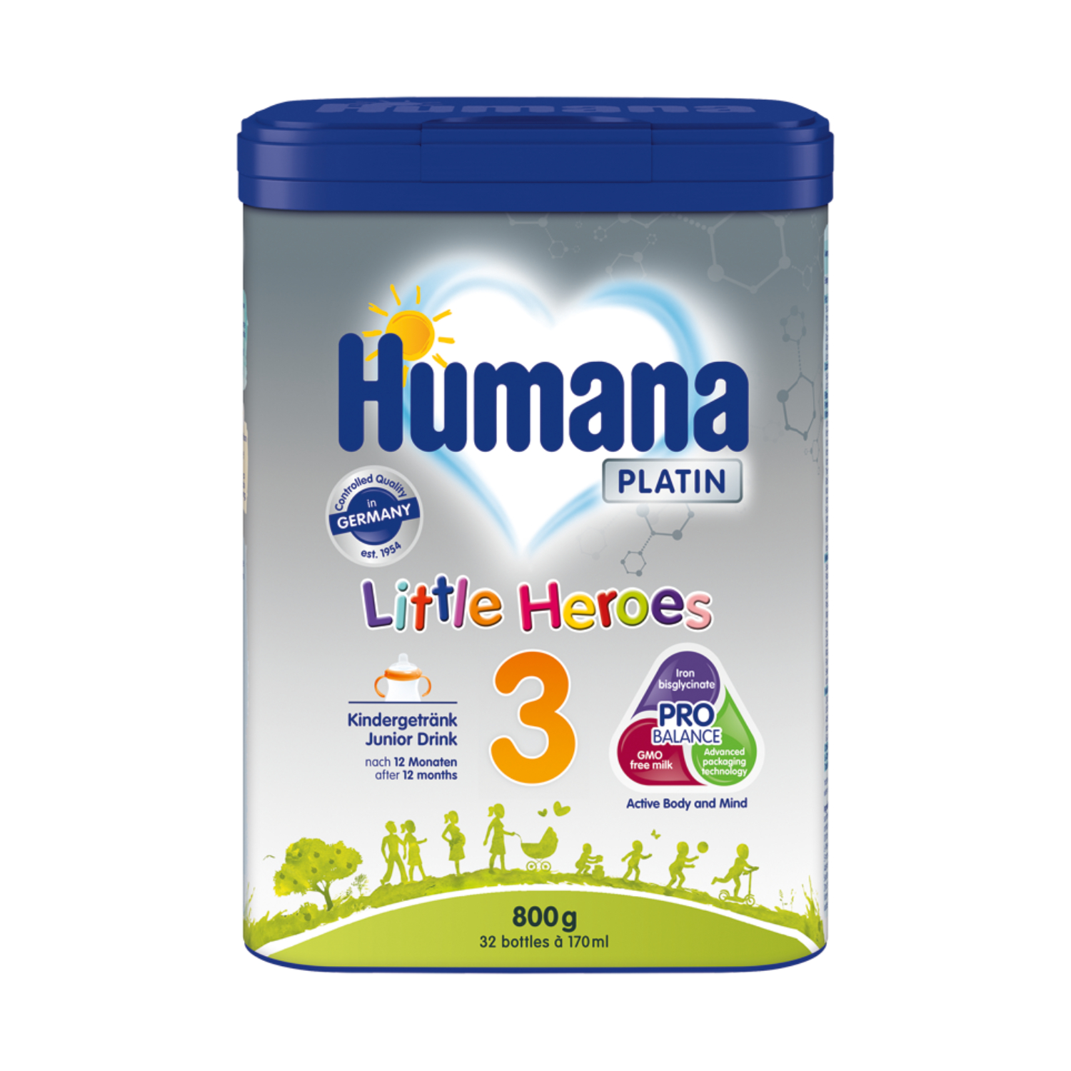 Молочная смесь Humana Platin — это специально разработанная молочная смесь, которая по составу и полезности максимально приближена к грудному молоку. Наша смесь Humana 3 Little Heroes обеспечивает вашего малыша всеми необходимыми питательными веществами для своевременного когнитивного развития и развития моторики.