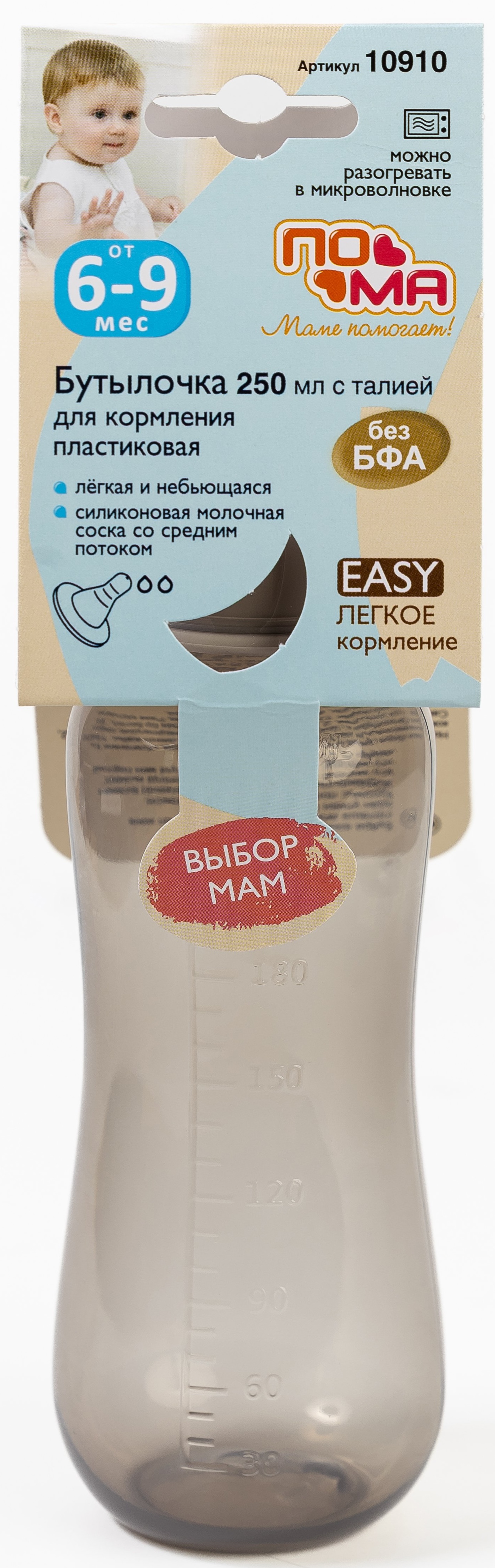 Купите ПОМА 10910 Бутылочка EASY для кормл.с талией 250 мл, 1 шт. (ПП, силикон, средний поток) 6+ в аптеках города Астана, Алматы, Кокшетау, Шымкент, Тараз, Кызылорда, Туркестан отправьте чек и получите бонус 5%.