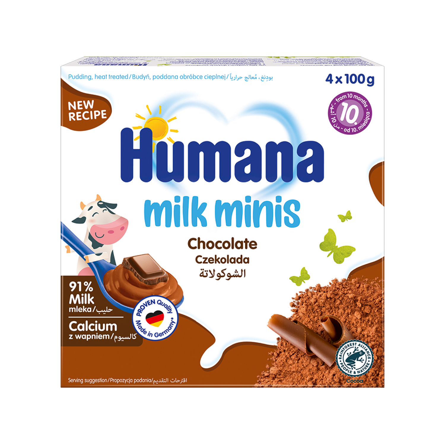 Пудинг шоколадный Humana - вкусный и полезный десерт, который имеет нежную консистенцию и мягкий вкус какао с легкими молочно-ванильными нотками. Пудинги Humana на 90% состоят из свежего экологически чистого молока. Бережная обработка молока позволяет максимально сохранить его природную пользу, поэтому пудинги Humana служат полноценным источником молочного белка и натурального кальция. В пудинги добавляется натуральный загуститель из бобов рожкового дерева для того, чтобы получить легкую воздушную консистенцию. В процессе производства используется специальная технология пастеризации, что обеспечивает стерильность готового продукта. Благодаря этому, а также высококачественной свето- и воздухонепроницаемой упаковке, десерты Humana имеют длительный срок хранения.